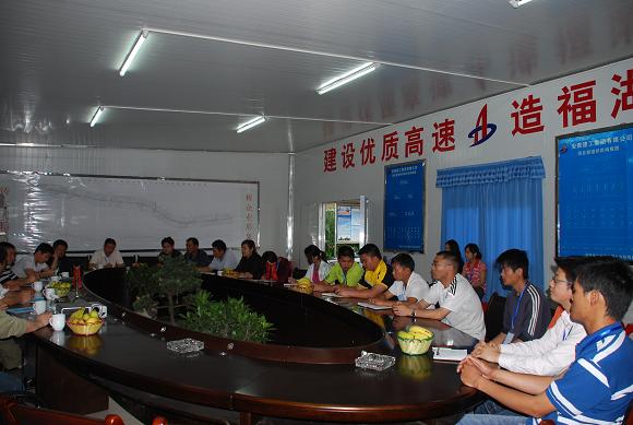 在聽取了項(xiàng)目部負(fù)責(zé)人的匯報(bào)后,胡董事長對項(xiàng)目部的人員、設(shè)備配置,管理流程以及工程進(jìn)展表示滿意,對大家所作的努力給予了肯定。他強(qiáng)調(diào),一要在保證工程質(zhì)量和安全前提下加快施工進(jìn)度,特別是在當(dāng)前雨季,要科學(xué)安排工序,細(xì)化施工計(jì)劃,確保總體工程進(jìn)度;二是要處理好與業(yè)主、監(jiān)理、地方等方面關(guān)系,營造良好的施工環(huán)境;三要建立完善管理流程,確保各項(xiàng)工作有序運(yùn)轉(zhuǎn);四要加強(qiáng)項(xiàng)目文化建設(shè),做好文化理念宣貫,打造安徽建工品牌。