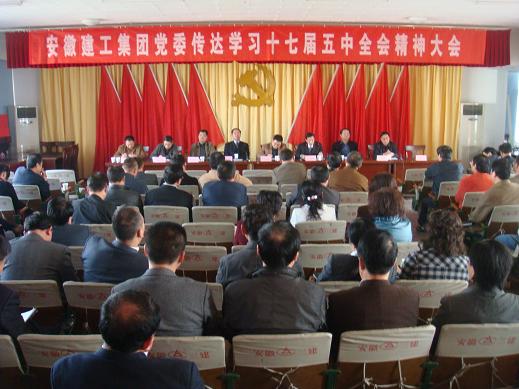 11月10日上午,安徽建工集團(tuán)有限公司黨委召開傳達(dá)學(xué)習(xí)十七屆五中全會精神大會,集團(tuán)公司領(lǐng)導(dǎo),所屬各單位領(lǐng)導(dǎo)班子成員、黨群部門負(fù)責(zé)人,集團(tuán)機(jī)關(guān)全體黨員參加會議。