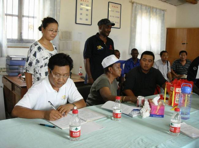 當地時間2011年5月7日上午,在弗里敦我現場辦公室許良權組長和塞公共衛生和健康部部長班古拉女士分別代表中、塞雙方在《工程合格證書》上簽字,駐塞使館經商處朱江秘書代表商務部國際經濟合作事務局參加了簽字會議。