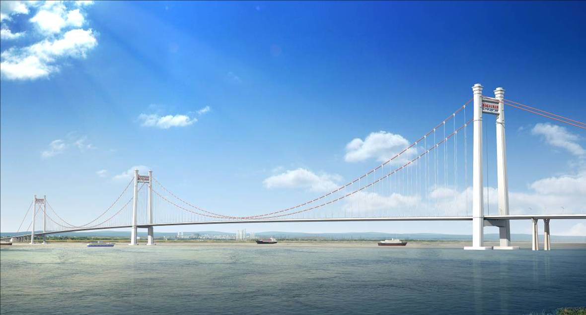 馬鞍山長江公路大橋橋型新穎,技術(shù)含量高。左汊主橋采用2×1080米三塔兩跨懸索橋,主跨跨度突破千米,位列世界同類橋型第一;主纜長度突破3000米;鋼混疊合塔規(guī)模為世界第一;中塔還首次采用塔梁固結(jié)體系,抗風吹浪打能力強,這也是世界上的創(chuàng)新。右汊主橋采用2×260米三塔斜拉橋,橋塔為橢圓拱型,為國內(nèi)首座拱型塔三塔斜拉橋。大橋指揮部還通過動畫的方式,生動形象的演示了長江大橋施工的關(guān)鍵步驟和過程方法。