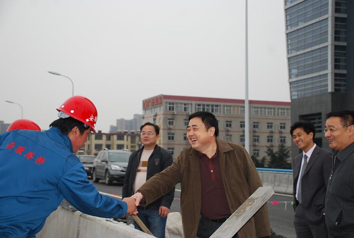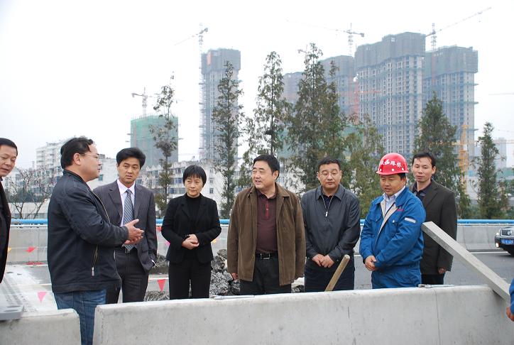 胡董事長(zhǎng)一行首先視察了即將完工的合肥市政重點(diǎn)工程——合作化南路高架1標(biāo)。在省路橋公司總經(jīng)理汪衛(wèi)東、黨委書(shū)記陳光磊等有關(guān)領(lǐng)導(dǎo)的陪同下,胡董事長(zhǎng)登上高架橋,沿途視察了工程建設(shè)情況。即將完工的高架橋已經(jīng)展現(xiàn)雄姿,施工人員正在緊張忙碌著,胡董事長(zhǎng)走上前與他們握手交談,并仔細(xì)了解施工新技術(shù)、新工藝、新材料應(yīng)用情況。當(dāng)胡董事長(zhǎng)聽(tīng)說(shuō)合作化南路高架因進(jìn)度快、質(zhì)量好、安全文明施工受到合肥市領(lǐng)導(dǎo)及有關(guān)部門的多次贊揚(yáng)時(shí),胡董事長(zhǎng)欣慰的笑了。胡董事長(zhǎng)指出,合作化路高架橋建設(shè)體現(xiàn)了路橋公司在整合資源上的獨(dú)到之處,這條路也是他所看過(guò)的最好的一條路,安徽路橋公司不愧為安徽路橋行業(yè)的第一品牌!
