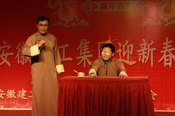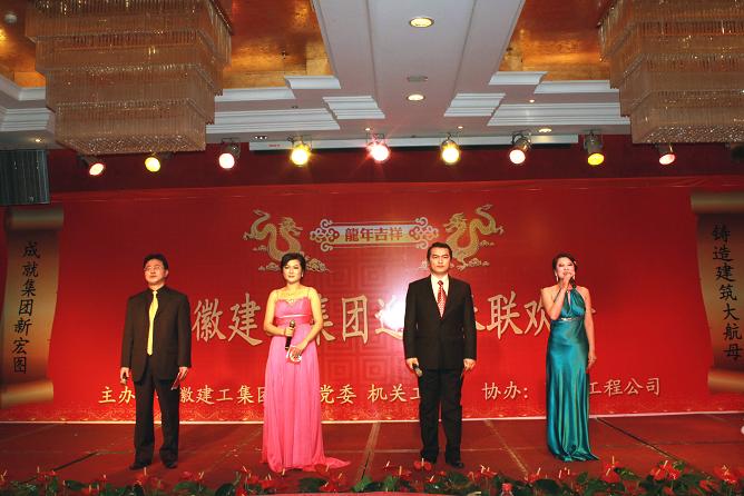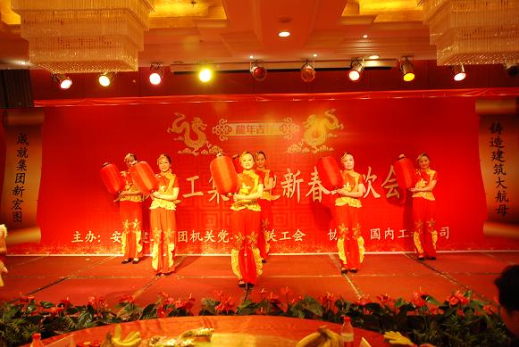 集團公司董事長、黨委書記胡運成首先致新春賀詞,他高度肯定了2011年集團公司在各方面取得的成績,對全體員工表示慰問,并預祝大家新春愉快、闔家歡樂!聯歡會在國內工程公司表演的舞蹈《好運來》中拉開序幕,職工們自編自導、傾情表演了歌曲、小品、雙簧、舞蹈等豐富多彩的節目,表達了對集團公司取得今天成就的驕傲,更充分展示了對集團公司明天取得更加輝煌業績的堅定信心和為之奮斗的決心。聯歡會上,還播放了經濟實體領導、海外及安建大廈等基層一線項目員工、機關及實體龍年生肖員工的新年祝福視頻,贏得了大家陣陣掌聲。集團公司領導上臺為本命年的員工派發了新年吉祥物。整場聯歡會沉浸在祥和、喜慶、熱烈的氣氛中。