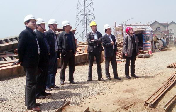 4月6日上午,安徽建工集團副總經理、總工程師戴良軍攜總經理助理郭道真一行,在路橋公司總經理汪衛東、副總經理盛明宏等陪同下,蒞臨宣貍BT項目檢查指導工作。