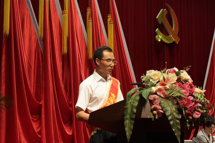 省三建公司項目經理吳明寬同志作為優秀共產黨員代表上臺領獎,并做了先進事跡交流發言。
