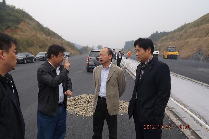 10月25日上午,安徽建工集團總經理趙時運、副總經理劉家靜、戴良軍、許克順、辦公室主任胡六中一行蒞臨宣寧路面02標,深入生產建設一線,視察并指導項目生產工作。安徽路橋公司總經理汪衛東,副總經理盛明宏、劉要武、路面公司總經理王遠勝陪同視察。