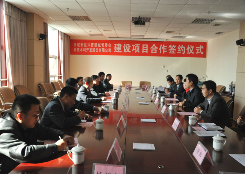 劉宇斌主任在致辭中首先介紹了灃西新城的城市規劃、產業布局及戰略定位等情況,并對安徽水利的企業文化、管理水平、施工實力等表示了高度贊賞。趙總對灃西新城規劃建設的日新月異表示祝賀,并就安徽建工集團、安徽水利股份的企業概況、業務板塊及投資布局等作了介紹。雙方都表示這次合作是雙方戰略合作的開始,希望通過這次合作進一步增加了解、促進互信,為下一步全方位、深層次、廣范圍的合作打下堅實的基礎。
