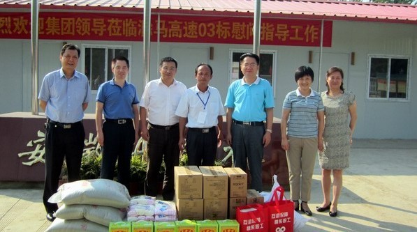 時值五黃六月,炎陽炙人,7月24日下午,安徽建工集團總經理劉家靜一行在省路橋公司董事長、總經理汪衛東、黨委書記陳光磊的陪同下,冒著酷暑來到該公司承建的滁馬03標,對奮戰在一線的廣大員工進行親切慰問,送上慰問金和慰問品;并對項目各項工作進行了檢查指導。
