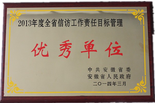 安徽建工集團(tuán)榮獲《2013年度全省信訪工作責(zé)任目標(biāo)管理優(yōu)秀單位》榮譽(yù)稱號(hào)