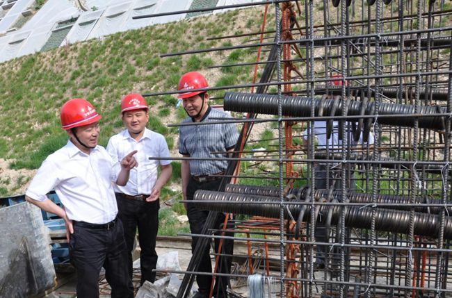 集團董事長、黨委書記趙時運(中)踏勘工地現場