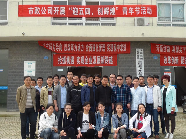市政公司團支部組織團員青年到全椒縣污水處理廠二期管網自營工程進行實地觀摩學習,并參觀了由市政公司承建的全椒古襄河工程的沿線景觀。