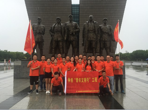 7月9日下午,安徽路港銅陵路高架項目團支部利用陰雨天組織項目部全體共青團員、入黨積極分子共30余人來到渡江戰役紀念館參觀,重溫入團誓詞,深切緬懷革命先烈的光輝業績,接受愛國主義教育。