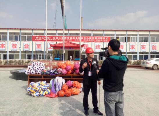 2018年4月16日下午,安徽衛視第一時間欄目組,走進安徽三建肥東縣政務服務中心項目部采訪“映山紅行動”捐贈儀式,在肥東縣重點工程建設管理局主任朱冬青、安徽三建六公司黨支部書記龔英全及肥東縣政務服務中心項目負責人胡海明等帶領下,項目團員青年積極參加。