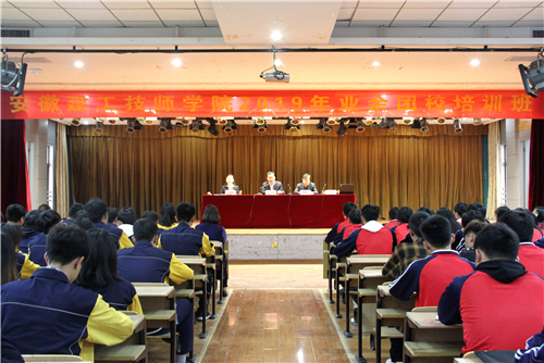 大會在團歌《光榮啊,中國共青團》中拉開帷幕。院團委許欣璨老師宣讀了《關于舉辦2019年入團積極分子培訓班的通知》;來自城市管理系的宣豆豆同學代表全體新學員鄭重承諾:嚴格遵守團校的各項規定,努力學習,為早日成為一名共青團員而努力奮斗!來自建筑工程系的李曉輝同學作為老團員代表發言。他認為,共青團員是學生中的骨干,是青年中的精英,作為一名團員,應當在學習生活中發揮模范帶頭作用,以身作則,做好表率,樹立良好的學生形象,成為一名優秀的共青團員。
