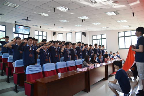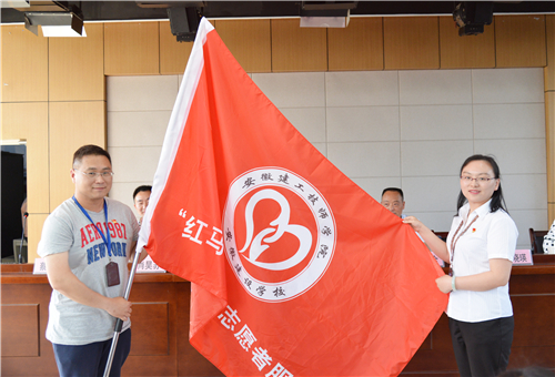 隨后,汽車與機(jī)電技術(shù)系書記助理蔡克老師宣讀了《關(guān)于同意成立“紅馬甲”青年志愿者服務(wù)隊(duì)的批復(fù)》。德育工作部副主任、團(tuán)委書記周曉瑛同志為“紅馬甲”青年志愿者服務(wù)隊(duì)授旗?!凹t馬甲”青年志愿者服務(wù)隊(duì)副隊(duì)長(zhǎng)陳亞楠老師宣讀了《“紅馬甲”青年志愿者服務(wù)隊(duì)章程》。18機(jī)電一體化班的李成同學(xué)代表青年志愿者發(fā)言,并帶領(lǐng)全體青年志愿者面對(duì)隊(duì)旗進(jìn)行了宣誓。