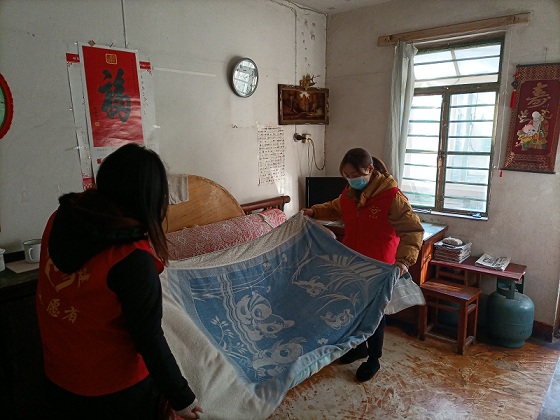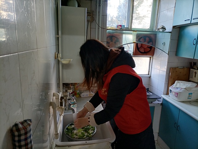 青年志愿者服務隊來到退休老職工家中,與職工們拉家常,了解他們的身體狀況和生活情況,并幫助他們打掃衛生、清洗蔬菜。