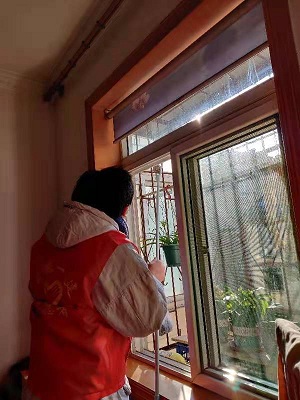 志愿者在得知有位老職工家里有馬蜂窩,給其生活帶來困擾和安全隱患后,立即采取行動,拿起工具對位于房屋高處的馬蜂窩進行快速清除,這一舉動讓這位老職工倍感溫馨。