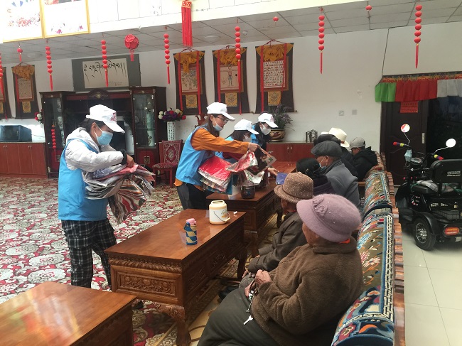 路橋集團西藏新瑞公司青年志愿者一行來到拉薩市社會福利院,幫助社會福利院開展衛(wèi)生清理、花壇雜草清除等實踐活動,為孤寡老人送上保溫杯、圍巾、棉被、帽子等愛心物資,還為他們包水餃、演節(jié)目,陪老人們一起度過了一個溫馨的節(jié)日。