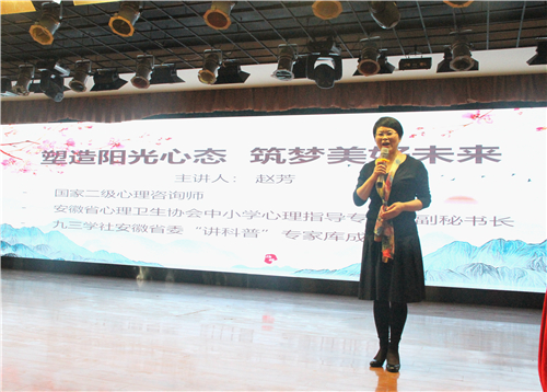 為進一步提高我院學生心理健康意識,增強自我調節能力,營造良好的心理健康氛圍,4月21日下午,學院邀請了著名心理健康專家、安徽省心理衛生協會中小學心理專業指導委員會副秘書長趙芳老師在學院大禮堂做題為“塑造陽光心態,筑夢美好未來”心理健康專題講座。學院黨委委員、副院長任建設、五系一部書記、學管人員、專兼職班主任、400余名學生代表參加了培訓。講座由院團委副書記桂萍主持。