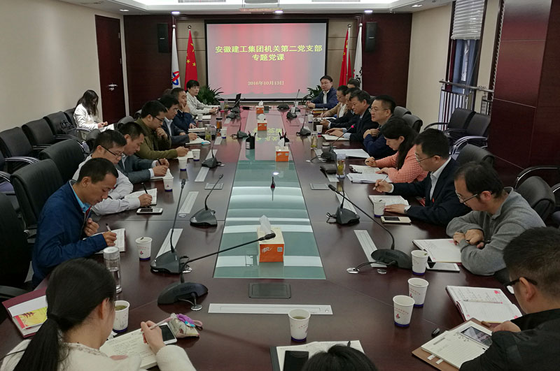 10月13日,在安建大廈2818會議室,應機關第二黨支部邀請,集團總經理、黨委副書記劉家靜同志為機關第二黨支部全體黨員授了題為“緊密結合企業中心工作,貫徹落實‘兩學一做’學習教育”的專題黨課。第二支部黨員、群眾共27人參加學習,集團總會計師牛曉峰同志以普通黨員的身份參加會議并聽黨課。會議由第二支部書記朱金蓉同志主持。