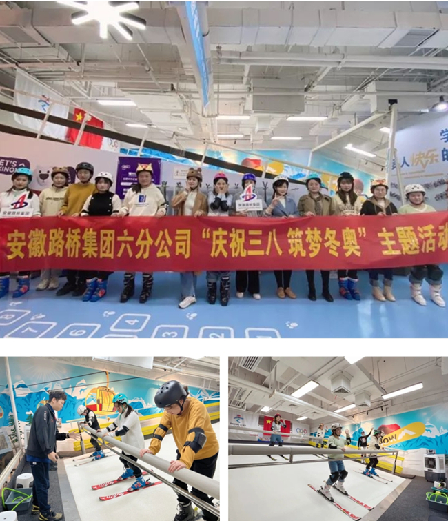 六分公司組織全體女職工開展了以“慶祝三八 筑夢冬奧”為主題的滑雪活動。大家在助教的幫助下,穿戴好滑雪裝備,走上了滑雪機器,一起跟隨教練學習了犁式剎車及犁式直滑降,一遍又一遍的練習,切身體會到“臺上三分鐘,臺下十年功”,更能領會冬奧中國運動員們為了國家榮譽背后付出的艱辛和不易。