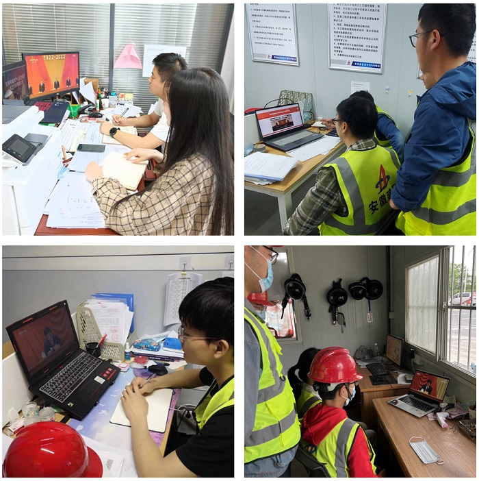 5月10日上午10點,慶祝中國共產(chǎn)主義青年團成立100周年大會在人民大會堂隆重舉行,習(xí)近平總書記發(fā)表重要講話。安建總承包團委第一時間作出工作部署,組織所屬16個團支部200余名團員青年分別在屬地、各項目部收看大會實況直播。