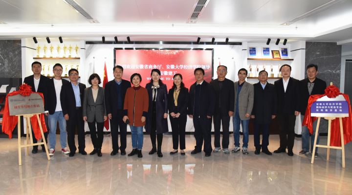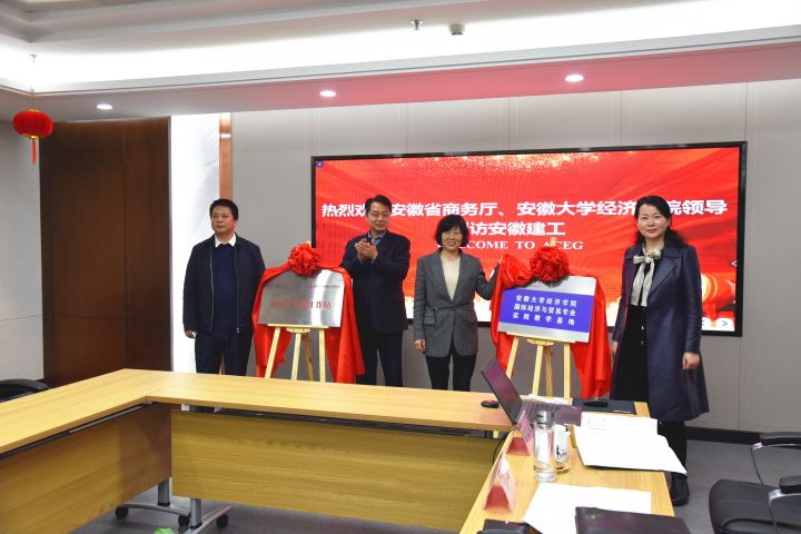 簽約儀式后,孫永彬、田淑英、華德亞、朱金蓉共同為安徽大學經濟學院國貿專業實踐教學基地及建工股份碩士生導師工作站揭幕,顧廣玲和華德亞為邢應梅、胡海濤頒發安徽大學國際商務碩士專業學位研究生兼職導師聘書。
