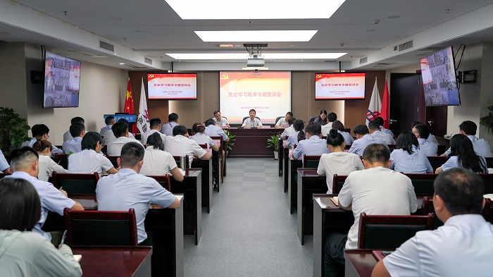 會(huì)議以現(xiàn)場(chǎng)加視頻形式召開,機(jī)關(guān)中層管理人員和全體黨員等40余人在主會(huì)場(chǎng)參會(huì),各分支機(jī)構(gòu)負(fù)責(zé)人、所屬部門及項(xiàng)目負(fù)責(zé)人、群團(tuán)組織負(fù)責(zé)人和黨員共160余人在分會(huì)場(chǎng)視頻參會(huì)。