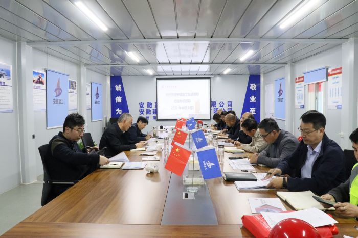 安建總承包領導高立久,安徽水利領導鄭桂林,安徽水利合肥分公司、皖東建投(滁州公司)和項目負責人等參加。