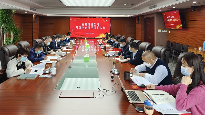 10月28日,安建投資黨委理論學習中心組專題學習黨的二十大精神。公司領導班子成員及機關部門負責人參會,集團黨委工作部副部長聶猛及有關人員到會指導。
