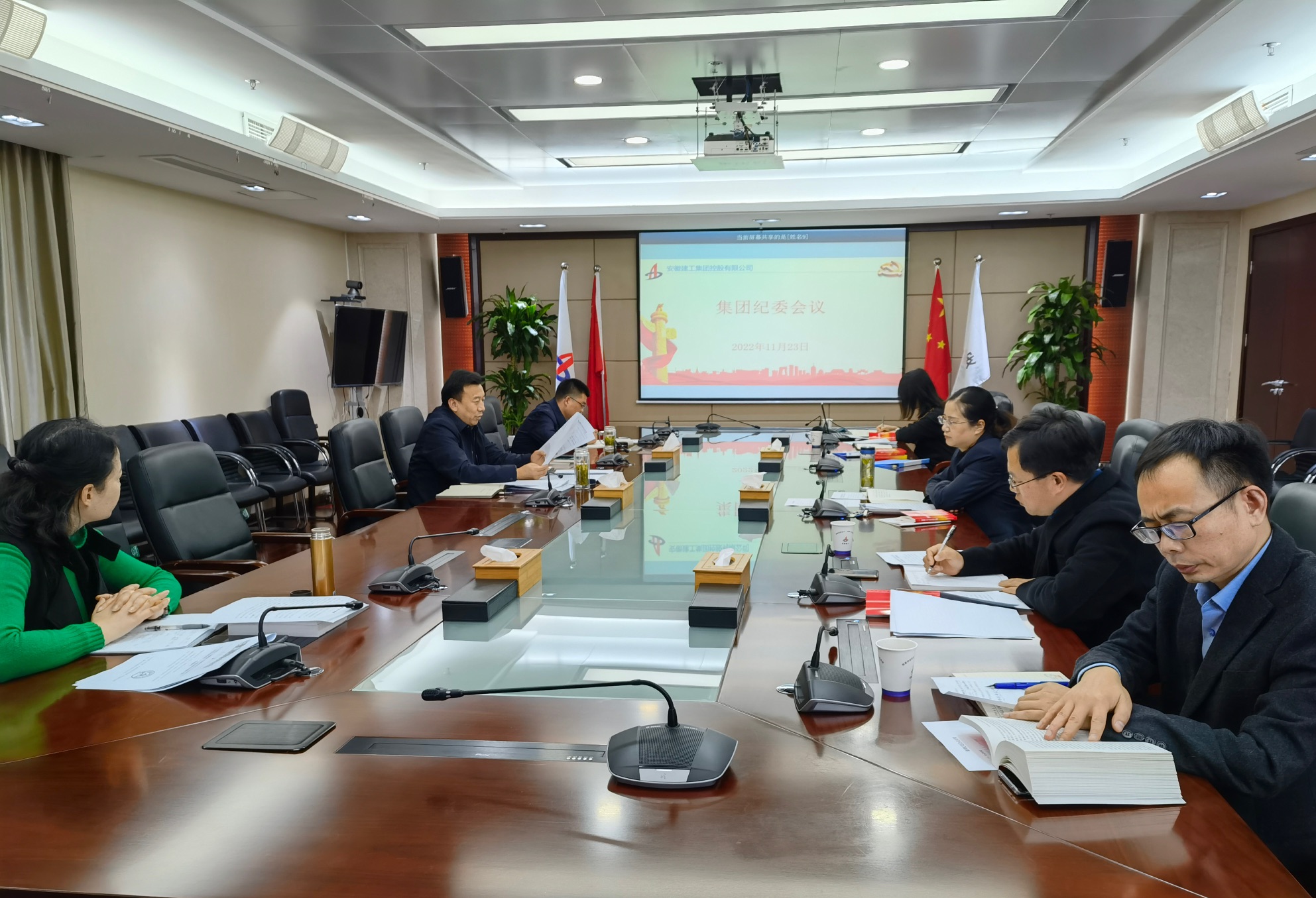 11月23日下午,建工控股紀委召開會議,學習研討黨的二十大精神,部署安排集團紀檢系統貫徹落實工作。集團黨委委員、紀委書記、監察專員王汪苗主持會議并講話,紀委領導班子成員參加會議。