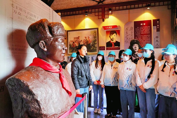 團(tuán)員青年們懷著敬仰的心情,時(shí)而駐足凝視、時(shí)而熱烈討論,領(lǐng)悟雷鋒同志全心全意為人民服務(wù)、為了人民的事業(yè)無私奉獻(xiàn)的偉大精神。