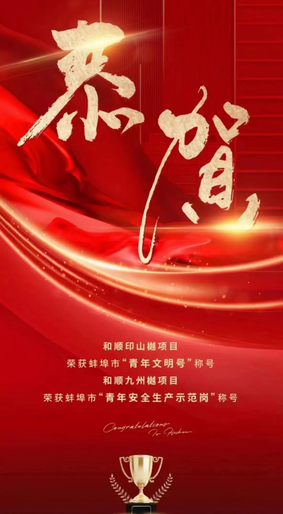 和順印山樾項(xiàng)目、和順九州樾項(xiàng)目分別榮獲2022年度蚌埠市“青年文明號”、“青年安全生產(chǎn)示范崗”稱號