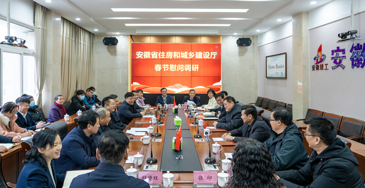在新春佳節即將到來之際,1月28日下午,省住建廳黨組書記、廳長賀懋燮一行來到安徽建工集團所屬安徽三建公司走訪慰問困難職工并召開座談會,送來廳黨組的關心關懷。廳黨組成員、副廳長吳桂和,廳黨組成員、副廳長陳揚年,廳黨組成員、總工方廷勇,建工控股黨委副書記、總經理劉家靜,黨委委員、紀委書記、監察專員王汪苗陪同慰問。
