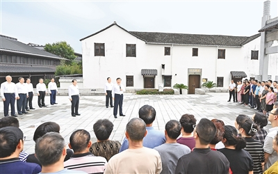 隨后,習近平乘車來到位于紹興的浙東運河文化園考察。他步行察看古運河河道和周邊歷史文化遺存,詳細了解浙東運河發展演變史和當地合理利用水資源、推進大運河保護等情況。習近平強調,大運河是世界上最長的人工運河,是十分寶貴的文化遺產。大運河文化是中國優秀傳統文化的重要組成部分,要在保護、傳承、利用上下功夫,讓古老大運河煥發時代新風貌。