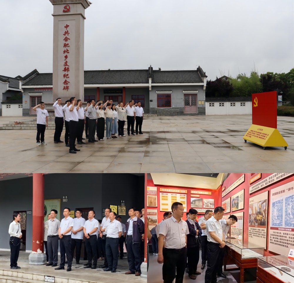 中共合肥北鄉支部紀念館是安徽省愛國主義教育示范基地、合肥市廉政教育基地。參觀前,由張俊同志帶領全體黨員肅立在鮮紅的黨旗前,莊重地舉起右拳,重溫入黨誓詞。隨后,在講解員的帶領下,黨員們從彌足珍貴的史料文物中,了解了以崔筱齋為代表的革命先烈創建合肥地區第一個黨組織的始末以及建立安徽省農民運動委員會、領導雙河集農民暴動的革命歷史,深刻感悟革命先烈無比堅定的理想信念和無私奉獻的革命精神,學習了他們以黨紀為尺的忠誠擔當和優良作風。