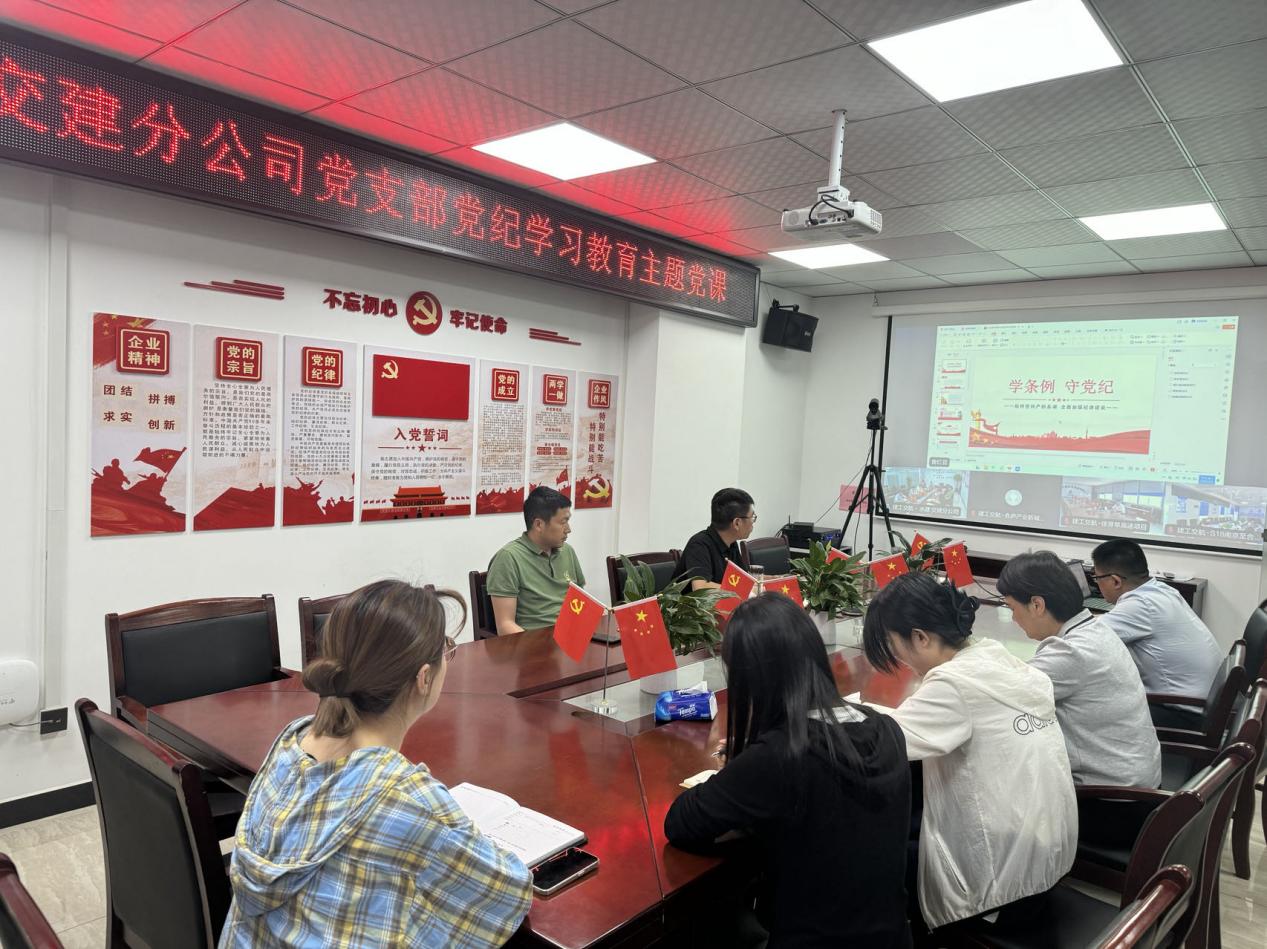 近期,交建分公司黨支部開展黨紀學習教育專題黨課,深入學習貫徹修訂后的《中國共產黨紀律處分條例》和習近平總書記的重要講話和重要指示精神,通過黨紀學習教育,學出生產力、戰斗力、凝聚力,做到學以致用、知行合一。