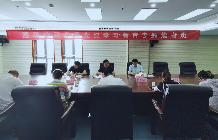 6月18日,酒店公司黨委黨紀學習教育專題讀書班正式開班,公司黨委副書記、副總經理李靜波主持開班式并講話。公司領導班子成員、機關各部門負責人,所屬黨支部負責人參加會議。