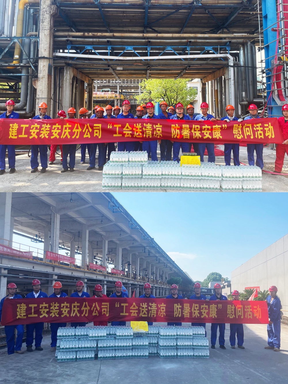 當前,安慶已進入夏季高溫和雨汛期,為切實維護廣大員工的勞動安全健康權益,7月23日下午,建工安裝安慶分公司工會深入項目一線開展“工會送清涼、防暑保安康”慰問活動。