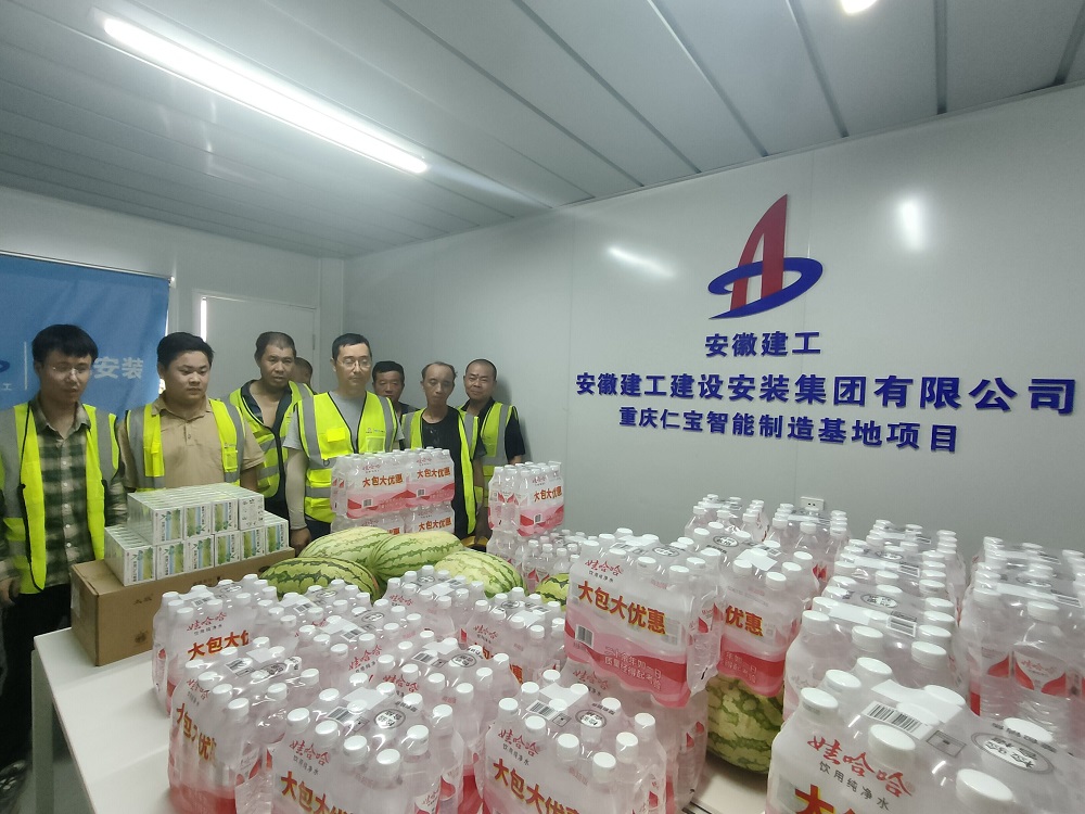 此次慰問先后來到臨湖智能制造產(chǎn)業(yè)園、花園大道、岳西中學(xué)、安徽建工鋼結(jié)構(gòu)綠色智造(六安)、新橋機(jī)場T2航站樓、新橋智能制造產(chǎn)業(yè)園、重慶中冶等項(xiàng)目施工一線,將綠豆、白糖、西瓜、礦泉水、藿香正氣水等防暑降溫物資送到高溫下堅(jiān)守崗位的一線員工手中。對他們的辛勤付出表示感謝,并反復(fù)叮囑大家要注意防暑降溫,合理安排施工和休息時(shí)間,確保施工安全。活動中,項(xiàng)目安全員還對現(xiàn)場工人進(jìn)行了夏季防暑降溫、中暑急救知識宣傳教育,有效提高了大家的自我保護(hù)意識和能力。