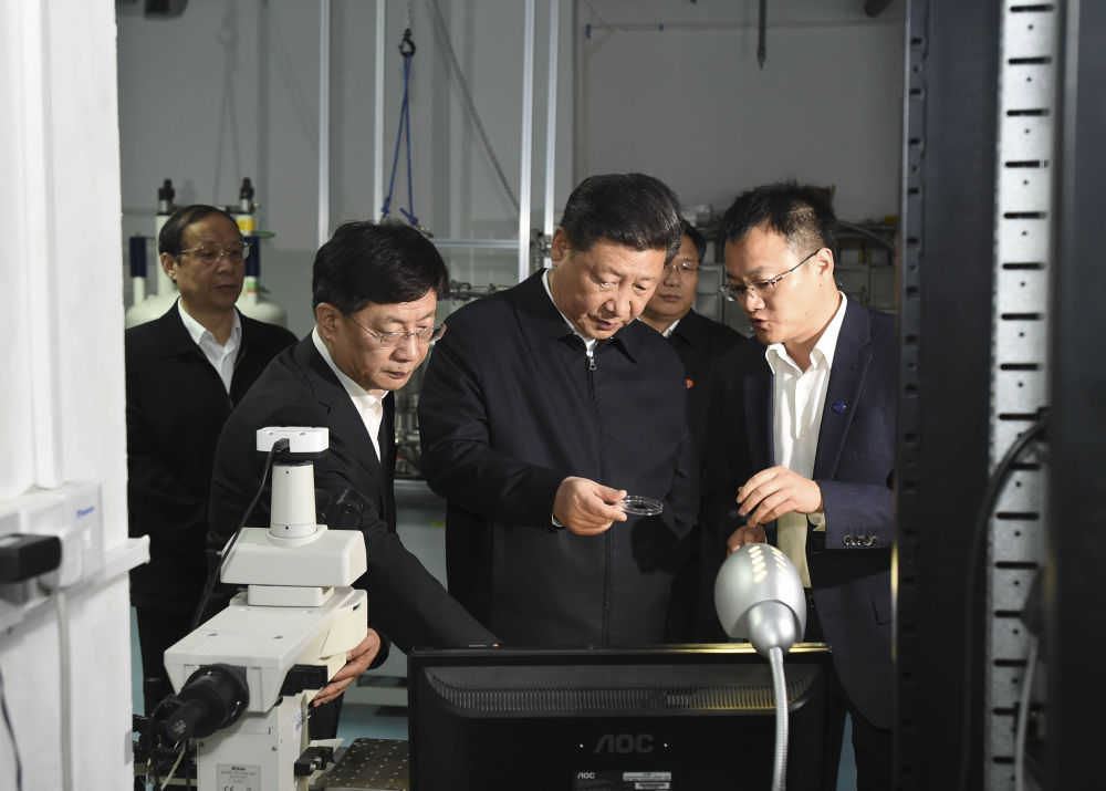 ??2016年4月26日,習近平在中國科技大學近代物理系自旋磁共振實驗室了解科研情況。