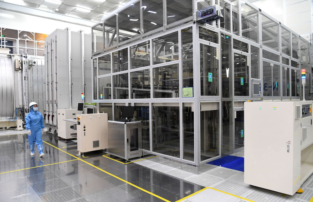 ??2022年7月28日,安徽合肥京東方顯示技術有限公司的工作人員在10.5代生產線上作業。