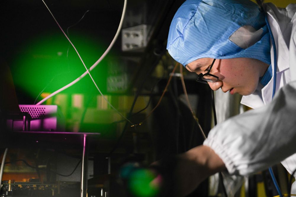 ??2022年1月31日,中國科學技術大學學生在中國科學院量子信息重點實驗室做實驗。