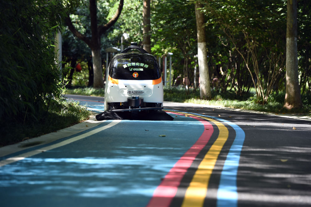 ??2022年6月24日,智能無人清掃機器人在安徽合肥一處公園清掃路面。