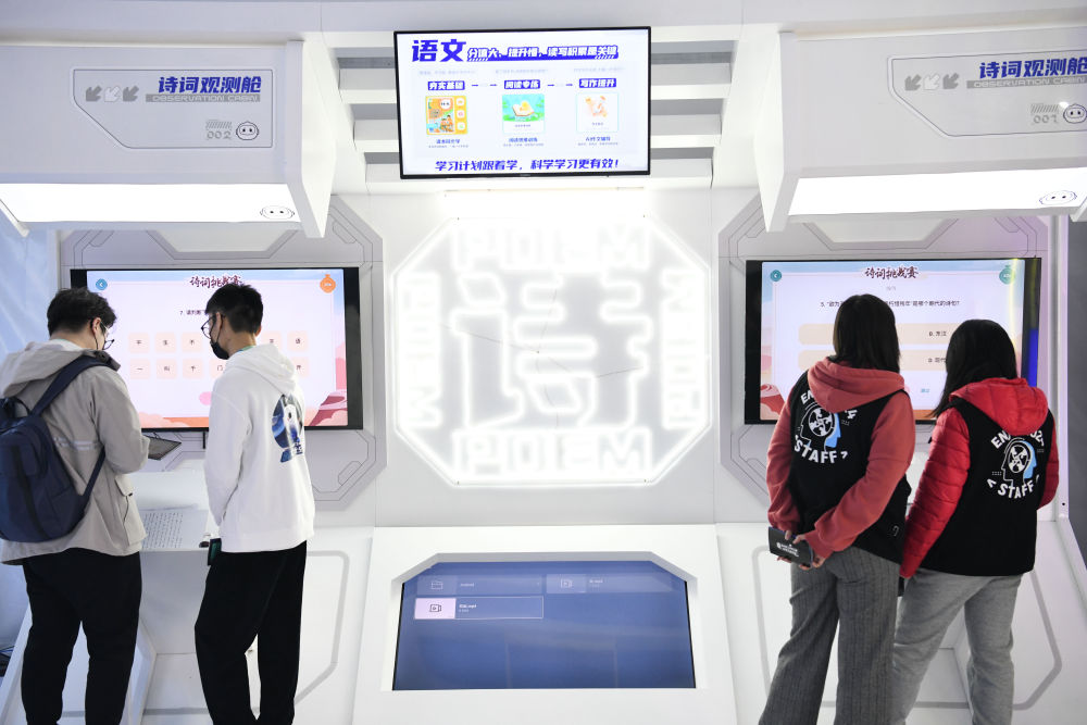 ??2022年11月17日,觀眾在于安徽合肥舉辦的第五屆世界聲博會上體驗教育領域智能產品。