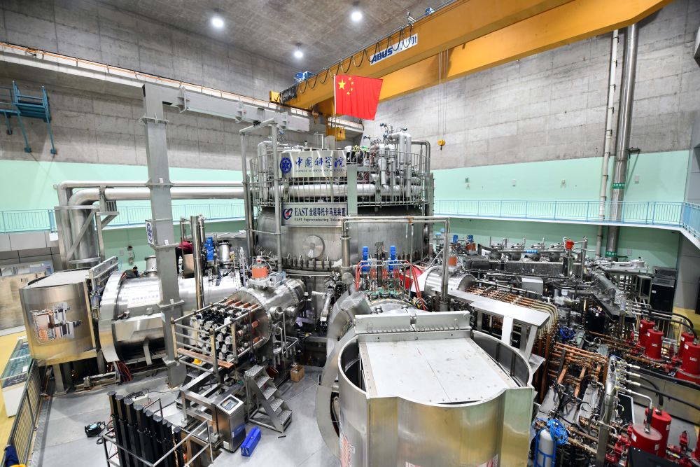 ??這是在安徽合肥科學島拍攝的“人造太陽”——全超導托卡馬克核聚變實驗裝置(EAST)(2021年4月13日攝)。