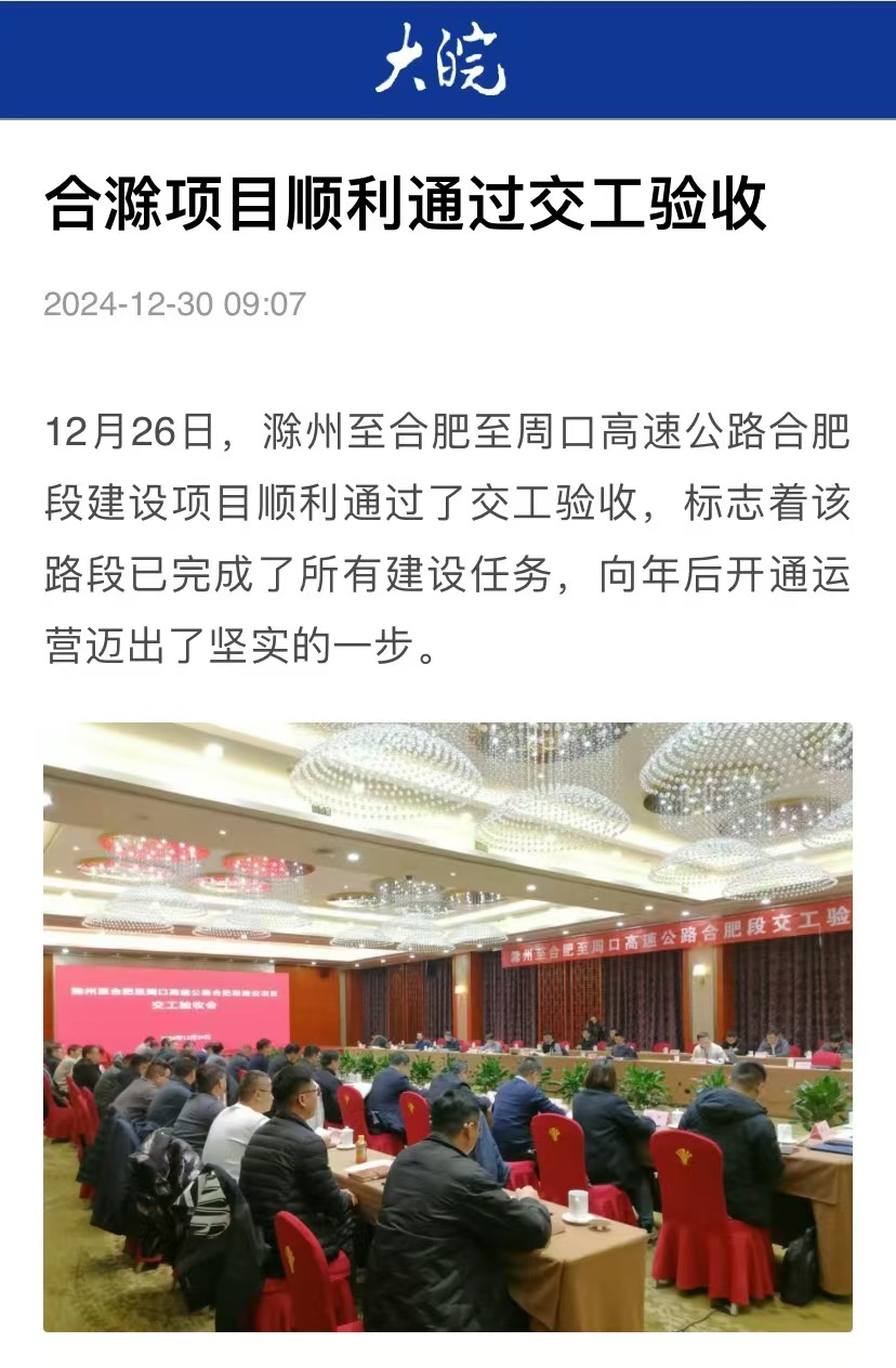 近日,安徽水利滁州至合肥至周口高速公路合肥段建設(shè)項(xiàng)目順利通過(guò)交工驗(yàn)收,標(biāo)志著該路段已完成了所有建設(shè)任務(wù),向年后開(kāi)通運(yùn)營(yíng)邁出了堅(jiān)實(shí)一步,受到大皖新聞等媒體關(guān)注報(bào)道。
