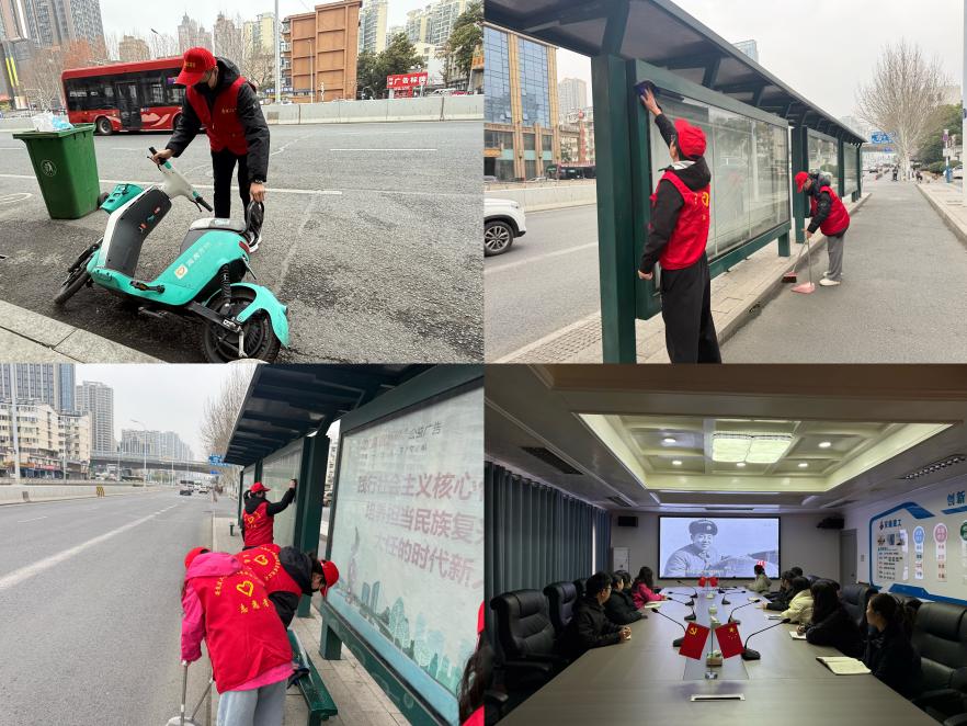 分公司機關組織團員青年開展志愿服務活動,對公交站臺周邊、站臺玻璃、金屬邊框、座椅等進行仔細清理,并對人行道上隨意停放的共享車輛進行整理和擺放。隨后,大家回到會議室集體學習了習近平總書記對深入開展學雷鋒活動作出的重要指示精神,并觀看了雷鋒系列視頻,重溫雷鋒同志的先進事跡。