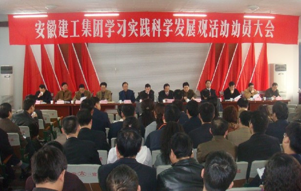 3月18日上午,安徽建工集團有限公司召開深入學(xué)習實踐科學(xué)發(fā)展觀活動動員大會。省屬企業(yè)學(xué)習實踐活動第三指導(dǎo)檢查組組長蔣福亮、副組長王健等及省國資委監(jiān)事會第八辦事處主任周勇應(yīng)邀出席大會;集團公司黨政領(lǐng)導(dǎo)班子成員,所屬各單位領(lǐng)導(dǎo)班子成員及有關(guān)部門負責人,集團公司機關(guān)全體黨員參加了會議。集團公司副董事長、學(xué)習實踐活動領(lǐng)導(dǎo)小組副組長李長斌主持會議。