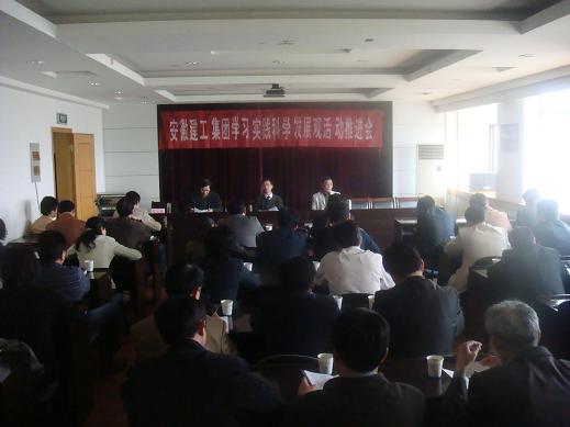 4月20日,安徽建工集團召開學習實踐科學發展觀活動推進會。所屬各單位(直屬經濟實體)學習實踐活動領導小組組長、副組長、辦公室主任,集團公司學習實踐活動領導小組及辦公室、檢查督導組全體成員參加了會議。集團公司黨委書記、學習實踐活動組長張海平作重要講話(全文另發),集團公司紀委書記、學習實踐活動副組長、辦公室劉振武主持會議。