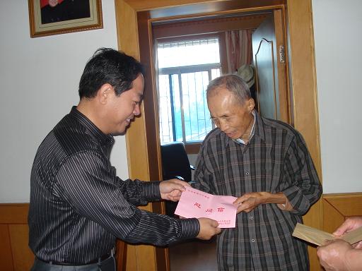 在中華人民共和國(guó)成立60周年到來(lái)之際,集團(tuán)公司副董事長(zhǎng)李長(zhǎng)斌率領(lǐng)集團(tuán)辦公室主任陳萍、安徽建機(jī)公司黨委書(shū)記王愛(ài)國(guó)等一行6人,于9月23日上午驅(qū)車前往安徽建機(jī)公司離休老干部——新四軍老戰(zhàn)士稽友三同志家中看望和慰問(wèn)。李長(zhǎng)斌副董事長(zhǎng)非常關(guān)心稽老的身體健康和生活情況,和老人親切交流,噓寒問(wèn)暖,代表集團(tuán)公司和集團(tuán)黨委向稽老送去慰問(wèn)信、慰問(wèn)金,并送上節(jié)日的關(guān)懷和祝福。